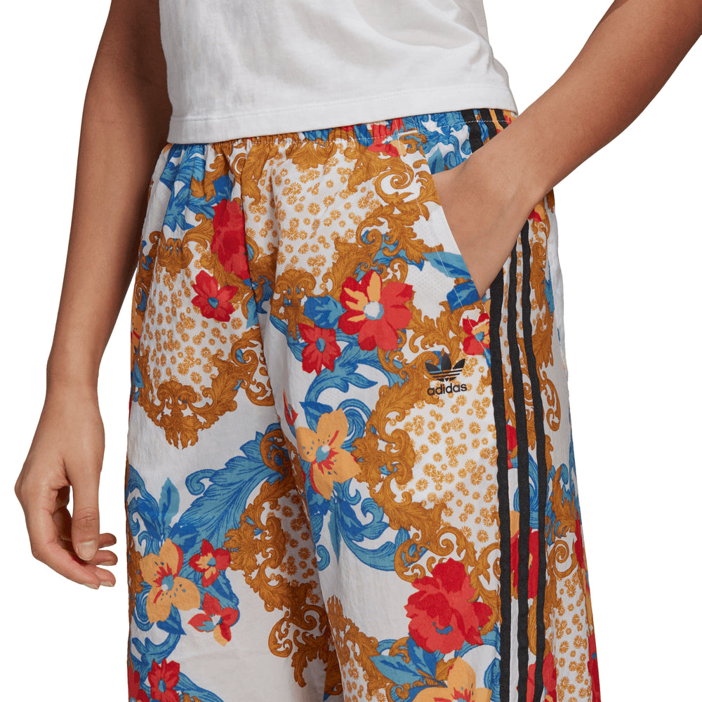 • Desenvolvida em parceria com o HER Studio London, ela brilha com uma estampa floral de inspiração barroca que se estende da cintura com cordão até as barras elásticas.