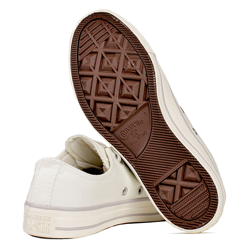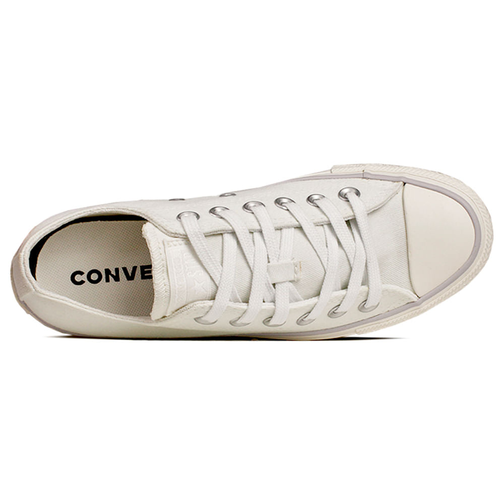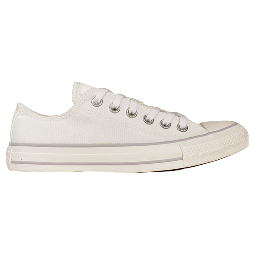 • O tradicional cabedal do Chuck Taylor All Star em versão monocromática. Confeccionado em tecido de algodão com toque suave e forro acolchoado, possui o logo Converse All Star aplicado na parte superior da língua e na Heeltab do calcanhar. O cabedal recebe também as tradicionais costuras em branco. Os ilhoses se destacam na cor prateada, com dois ilhoses laterais que permitem uma transpiração adequada aos pés. A vira de borracha recebe listras prateadas e o solado de borracha vulcanizada garante mais aderência ao caminhar.