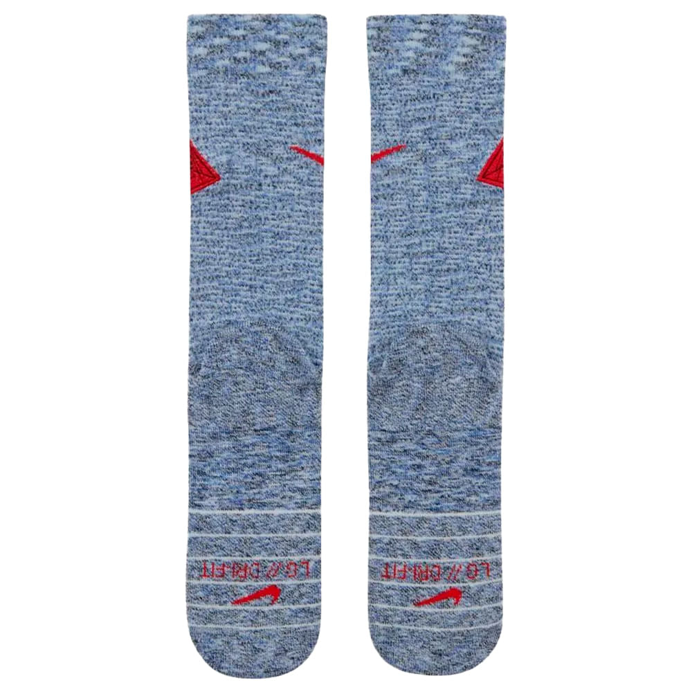 • Não se esqueça das meias! As meias médias Kyrie Multiplie se encaixam na linha de roupas sazonais da Ky, com cores e estampas combinando o seu look. Eles são feitos de fios elásticos antissuor, com lã na palmilha para maior conforto. A perna com nervuras e o arco do médio pé ajudam as meias a se ajustarem de forma confortável.
