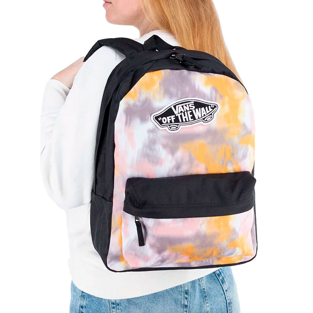 • Mochila Vans confeccionada em tecido 100% poliéster com estampa Tie Dye. Contém um bolso grande principal com compartimento para guardar notebook de até 15" e um bolso frontal organizador. O logo Vans Off The Wall aparece bem à frente na mochila. As alças acolchoadas aumentam o conforto do modelo.