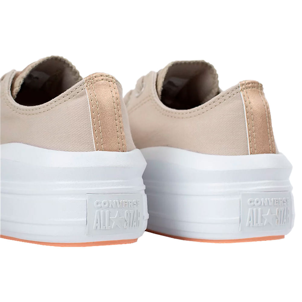 • O All Star Move é construído sobre uma sola plataforma ultra-leve e confeccionado em tecido canvas de algodão tipo lona. O modelo possui costuras duplas e borracha contrastando com o tecido. Para complementar o conforto, o calçado possui palmilhas em PU feitas com Die-Cut, unidas ao solado plataforma com aproximadamente 5cm de altura (podendo variar conforme o tamanho do tênis) estilo cupsole, feito em EVA, que garante um conforto levíssimo. Tudo isso com a assinatura Converse All Star na língua em material metálico e no Heel Logo aplicada no calcanhar, junto com uma tira em material metálico.