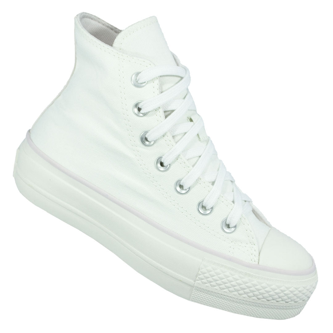 • Construído sobre um solado alto tipo plataforma, com aproximadamente 4 cm de altura, o Chuck Taylor All Star Lift, nesta versão em cores sazonais, é confeccionado em tecido canvas de algodão tipo lona e recebe costuras duplas para maior resistência do cabedal.