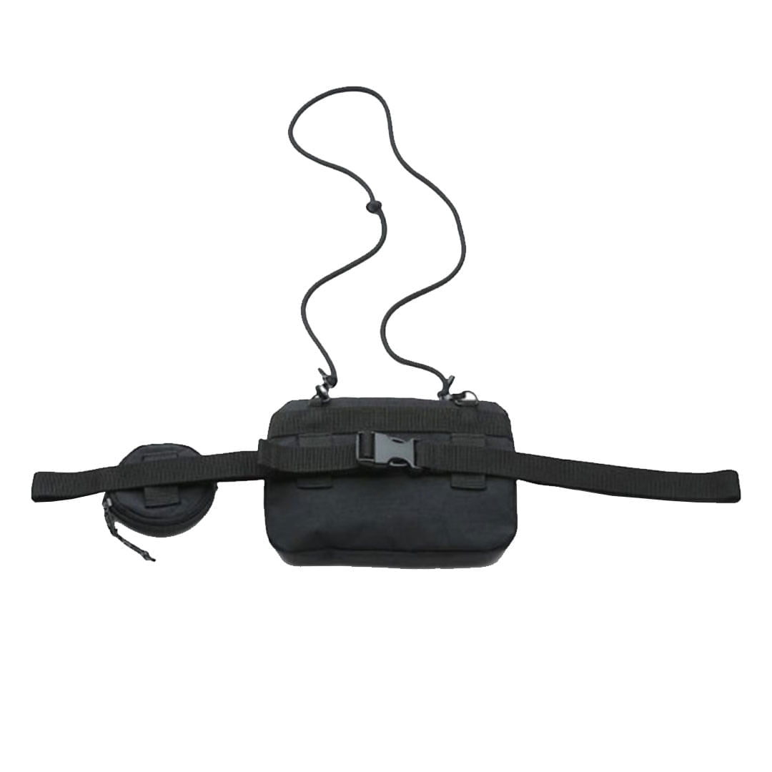 • Mini bolsa com 8,0 cm de circunferência e 1,0 cm de profundidade, anexada à pochete.