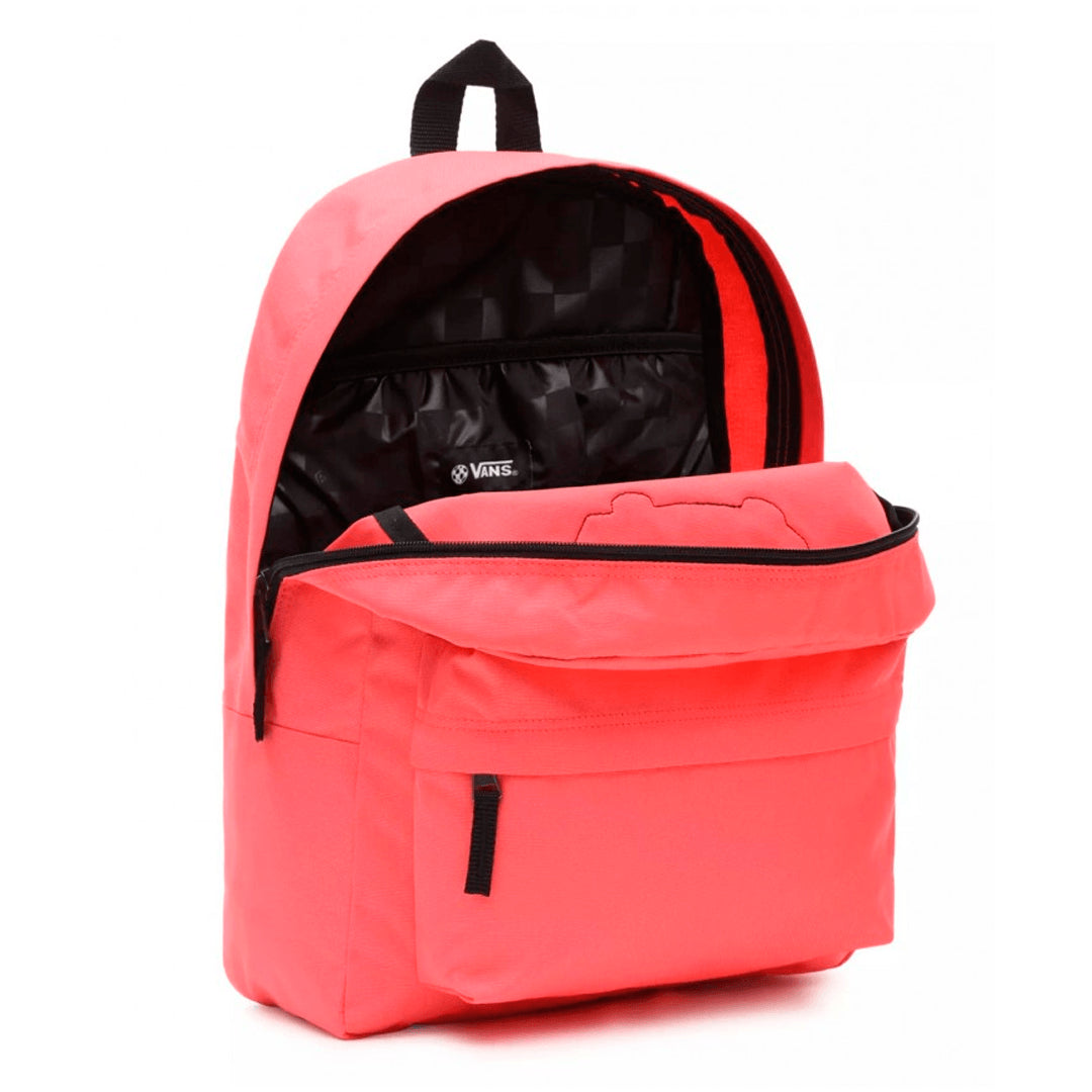 • O interior da mochila traz o clássico padrão Checkerboard da Vans, que adiciona um toque único e estiloso. Ideal para estudos, passeios ou organização do dia a dia, a Mochila Vans Wm Realm Backpack Calypso Pink combina qualidade, funcionalidade e o visual autêntico que só a Vans pode oferecer.
