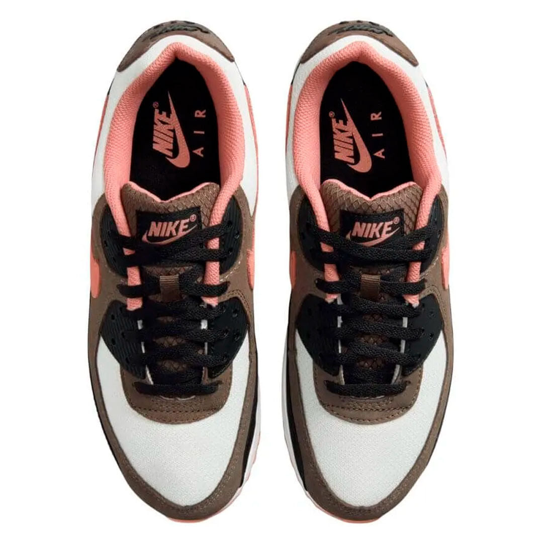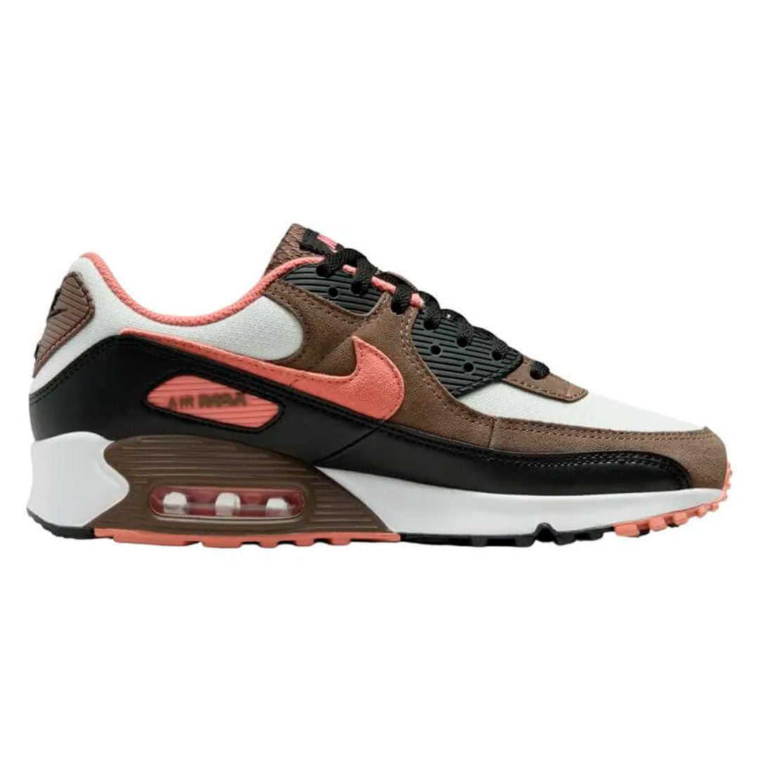 • O Air Max 90 com sua silhueta icônica, é uma releitura do clássico Air Max 1 lançado no final da década de 1980. Possui um cabedal confeccionado em tecido e material sintético semelhante a couro, e forro interno acolchoado.