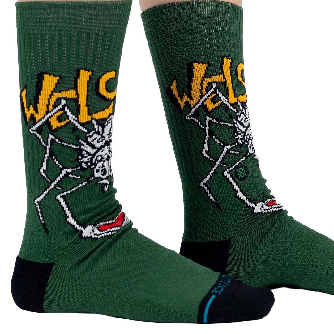 • A Stance e a Welcome Skateboards foram fundadas nos ideais de fazer as coisas de maneira diferente. Esta colaboração celebra esse sentimento de rebelião e auto-expressão que é fundamental para quem somos. Estas tripulações Welcome Wilbur são projetadas com uma almofada de peso médio e uma mistura de algodão penteado para um passeio confortável, essencial para sessões em parques e paisagens urbanas e finalizadas com Infiknit ™ para durabilidade durante todo o dia.