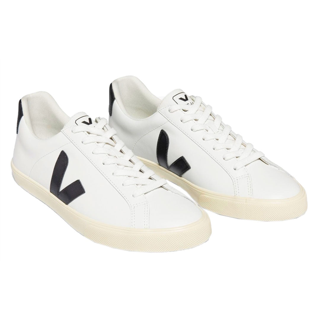 "• O tênis Esplar da Veja leva o nome da ONG brasileira que dá apoio técnico às famílias produtoras de algodão orgânico onde a marca atua no Norte do Brasil desde 2005. São confeccionados em couro com V contrastante, forro reciclado e solado de borracha selvagem de origem animal. a floresta amazônica.