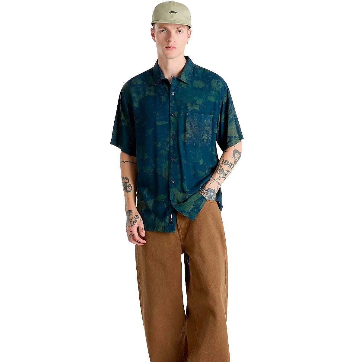 • A camisa em tecido e manga curta Vans Camp Loose Collar tem frente com botões, bolso com uma etiqueta em tecido no peito.
