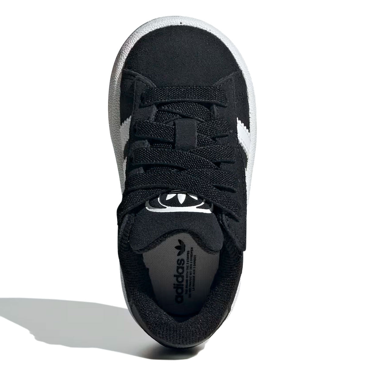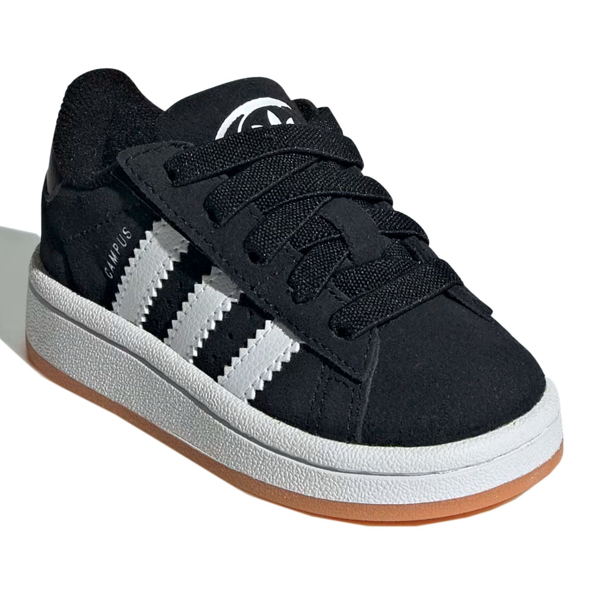 • Os cadarc¸os ela´sticos oferecem praticidade, facilitando o calce e tornando o tênis perfeito para a rotina das crianças. Detalhes icônicos, como as Três Listras e o clássico símbolo do Campus, permanecem presentes, preservando a essência retrô do modelo.