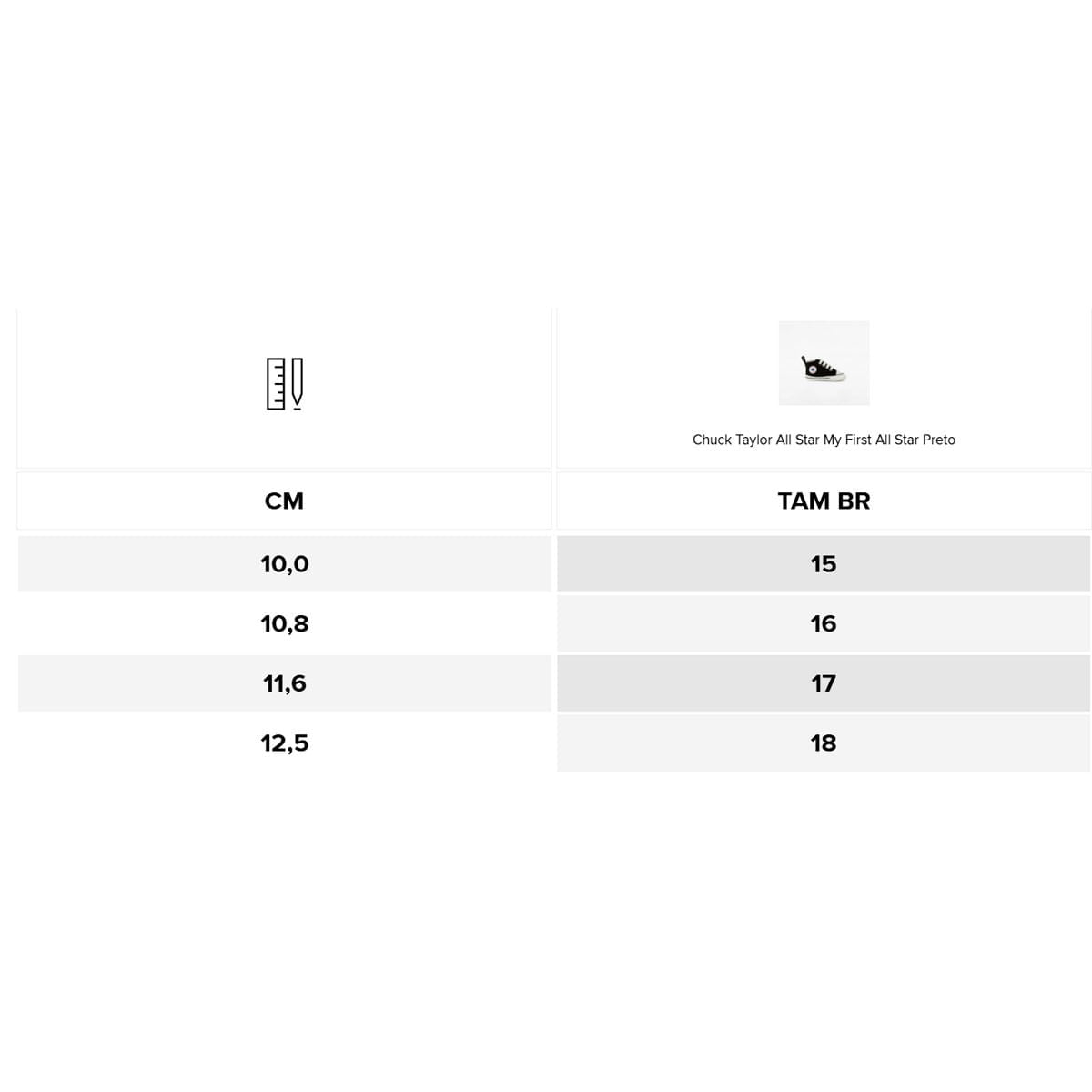 • O Chuck Taylor All Star My First All Star é a releitura em tamanho mini do tênis mais icônico da Converse, criado especialmente para os primeiros passos com estilo e conforto.