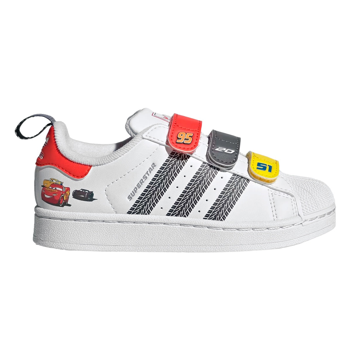 • Velocidade, estilo e diversão em cada passo! O Tênis adidas Superstar Infantil Disney Pixar Cars celebra o encontro entre o ícone das pistas, Relâmpago McQueen, e o lendário design das Três Listras. • O cabedal sintético macio traz gráficos exclusivos inspirados no filme “Carros”, incluindo detalhes que remetem a pneus e corridas, mantendo o visual clássico do Superstar com a tradicional biqueira de borracha. • O fecho em tiras aderentes (velcro) garante praticidade e ajuste firme, ideal para as crianças calçarem e retirarem sozinhas com facilidade. • Já o solado de borracha durável e o forro têxtil confortável oferecem tração, estabilidade e conforto para todas as aventuras do dia. Destaques: • Parceria adidas x Disney Pixar “Carros” • Gráficos do Relâmpago McQueen e Três Listras inspiradas em pneus • Cabedal sintético: resistente e fácil de limpar • Fecho em velcro: prático e seguro • Biqueira de borracha: visual clássico Superstar • Solado de borracha: aderência e durabilidade • Forro têxtil: conforto no uso diário