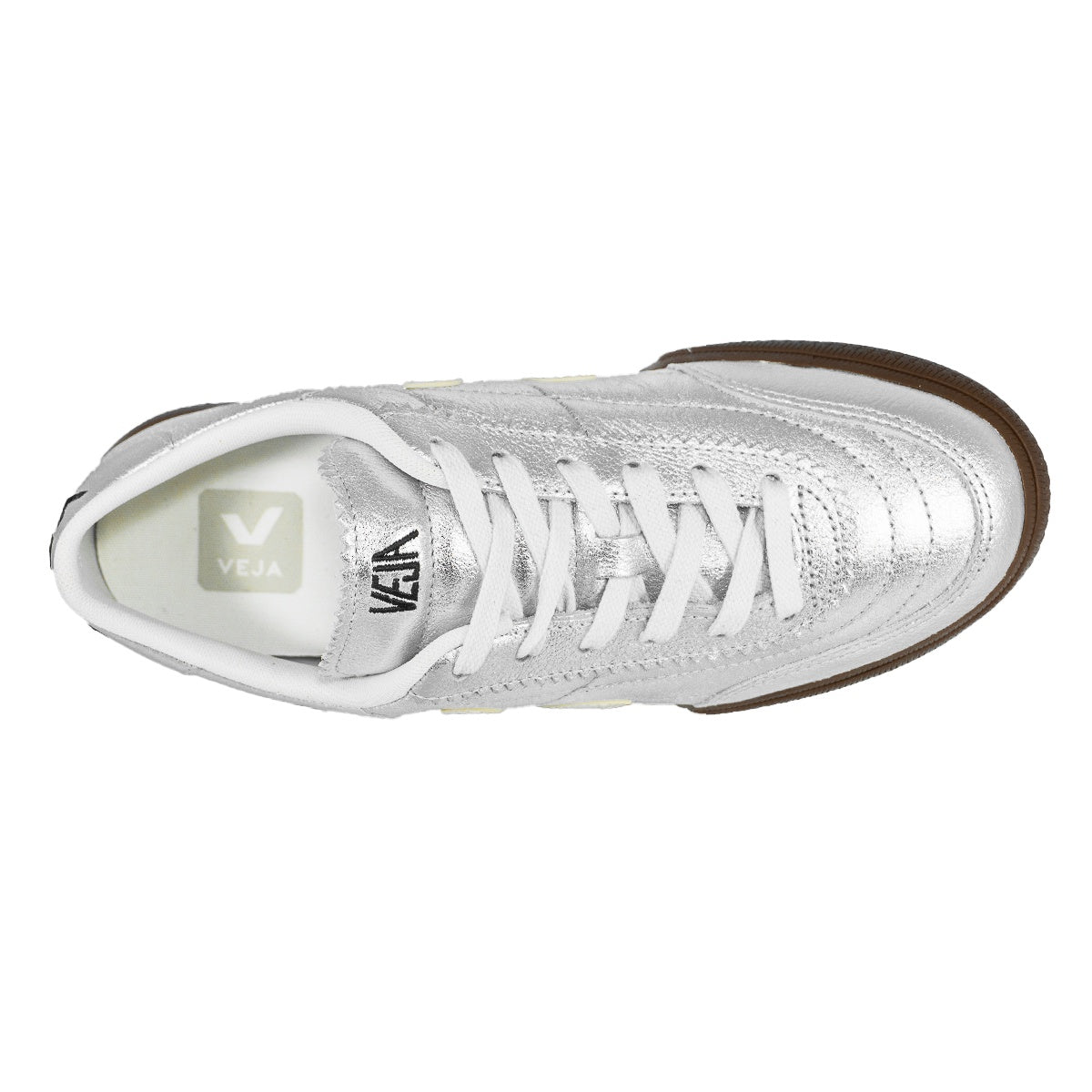 • Inspirado nas chuteiras clássicas e no estilo retrô esportivo, o Tênis VEJA Panenka O.T SILVER/PIERRE combina materiais nobres, design minimalista e um forte compromisso ambiental.