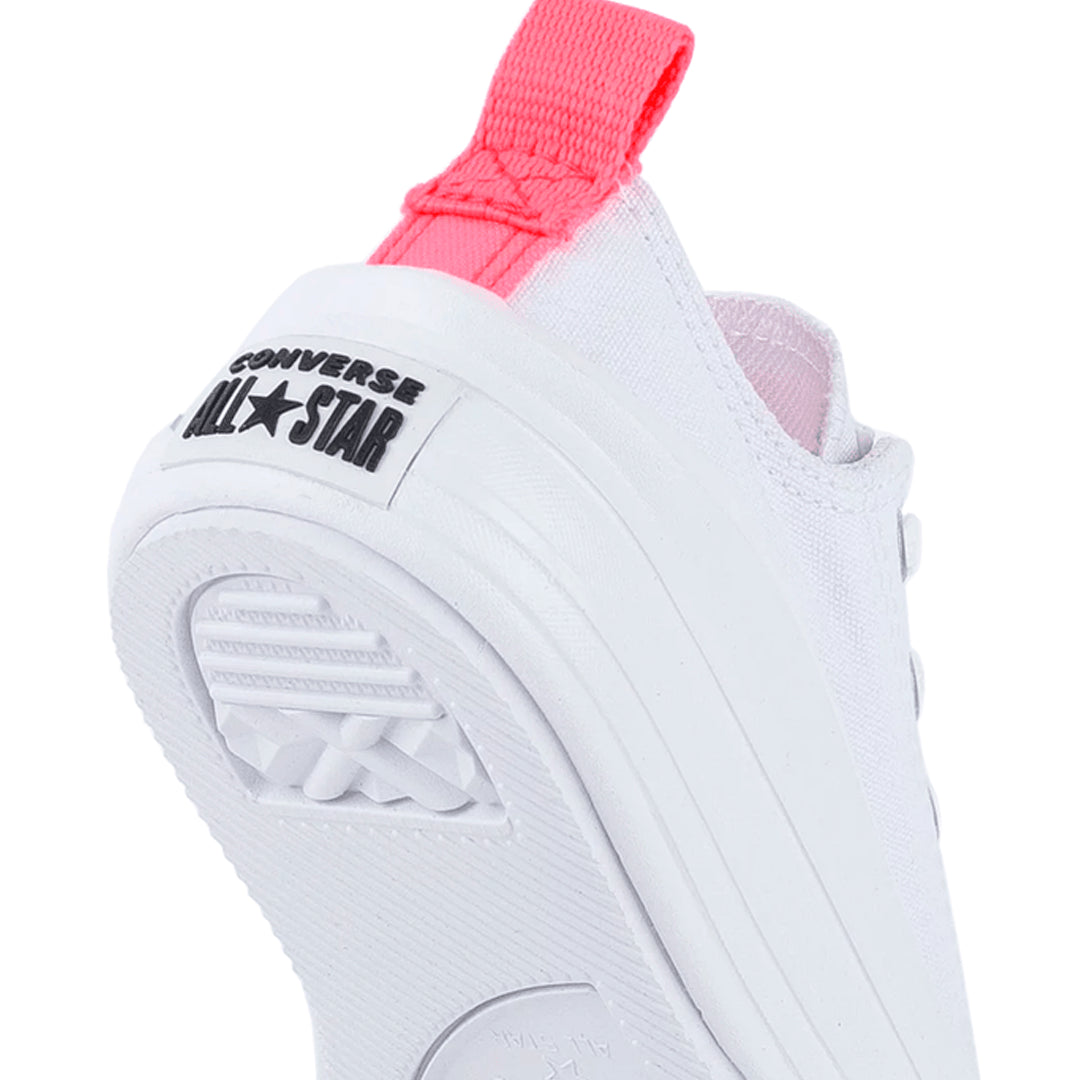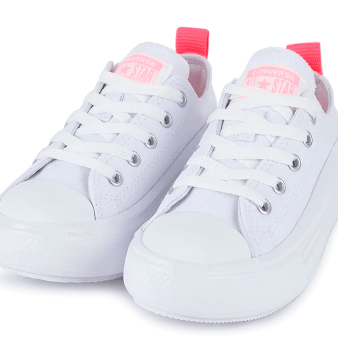 • Em sua versão kids, o icônico Chuck Taylor All Star Lift, com seu solado plataforma em borracha é confeccionado em tecido canvas de algodão tipo lona e possui costuras duplas no cabedal para maior resistência.