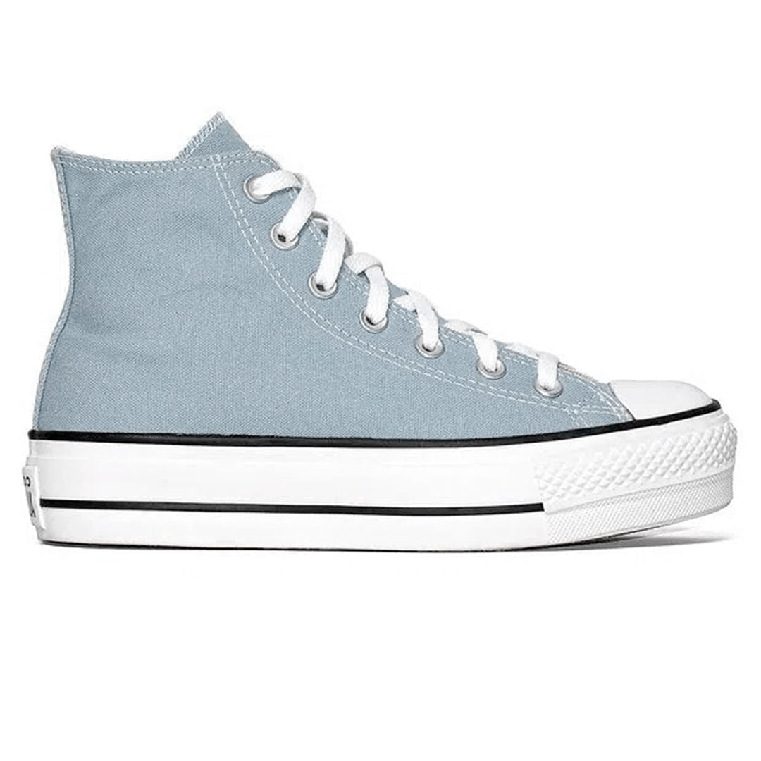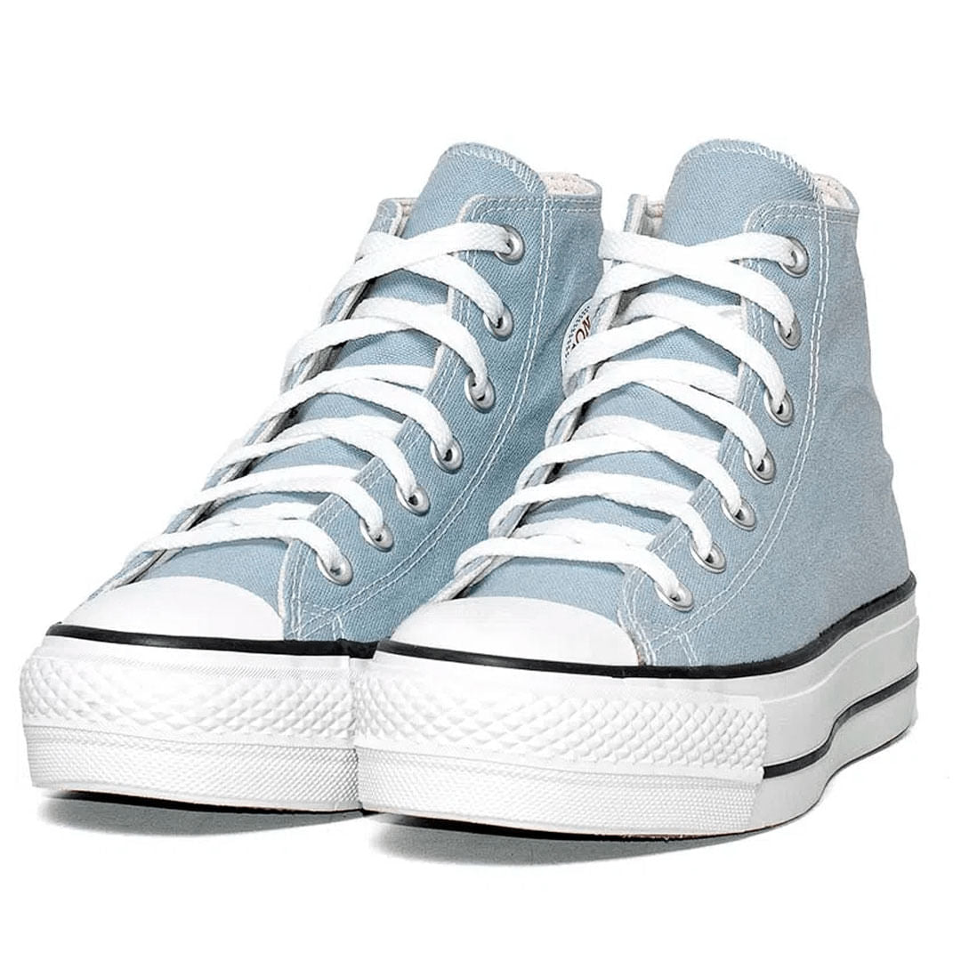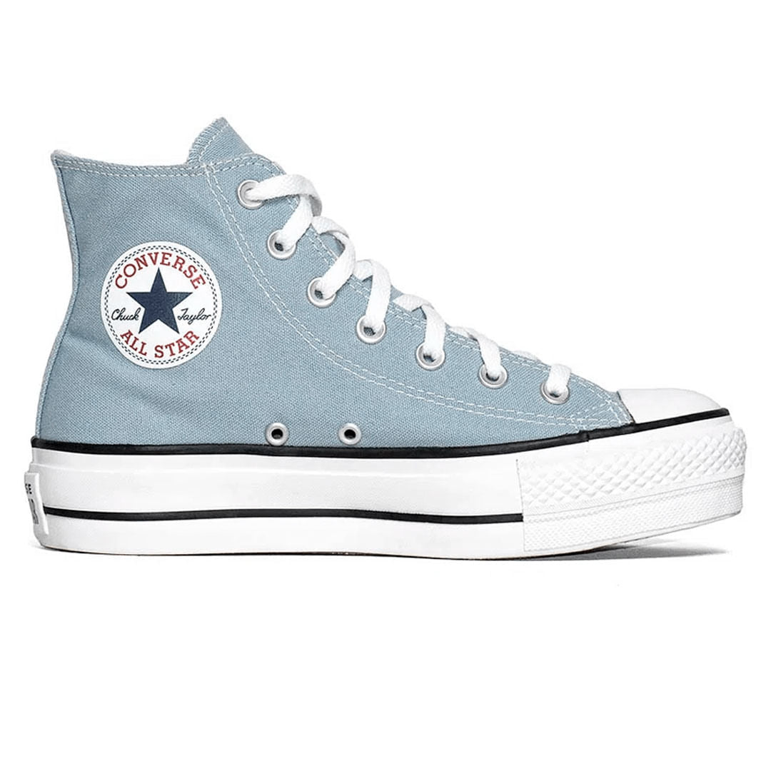 • Construído sobre um solado alto tipo plataforma, com aproximadamente 4 cm de altura, o Chuck Taylor All Star Lift, nesta versão em cores sazonais, é confeccionado em tecido canvas de algodão tipo lona e recebe costuras duplas para maior resistência do cabedal.