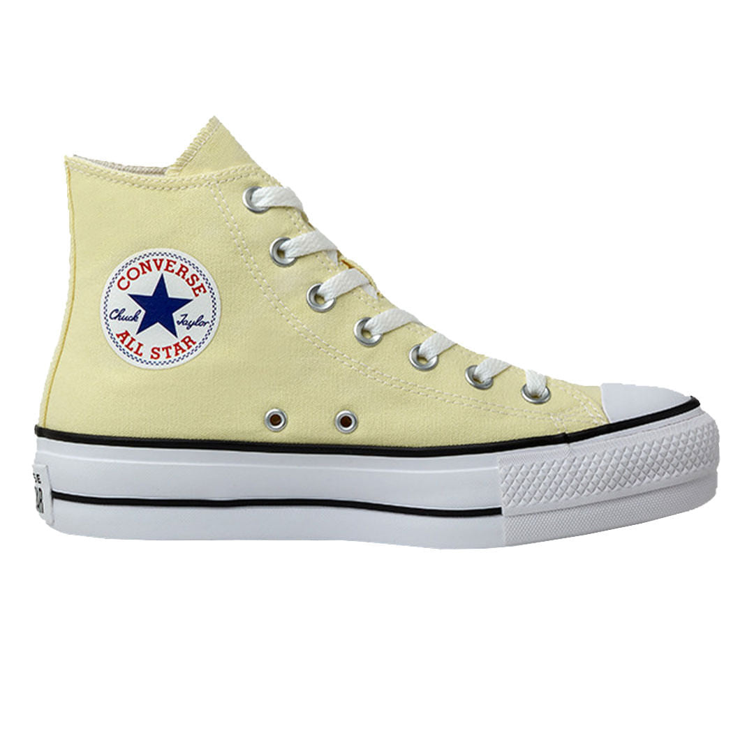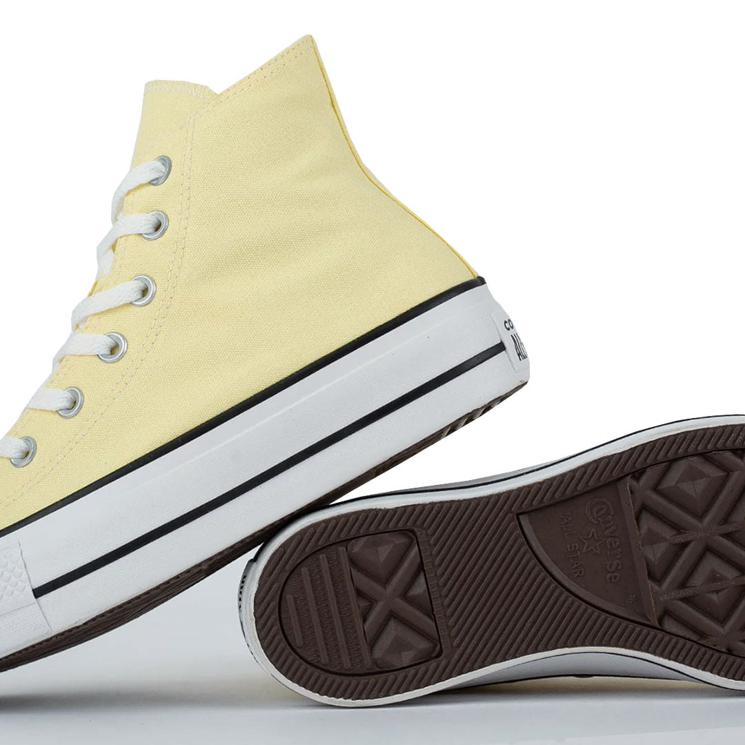 • Construído sobre um solado alto tipo plataforma, com aproximadamente 4 cm de altura, o Chuck Taylor All Star Lift, nesta versão em cores sazonais, é confeccionado em tecido canvas de algodão tipo lona e recebe costuras duplas para maior resistência do cabedal.