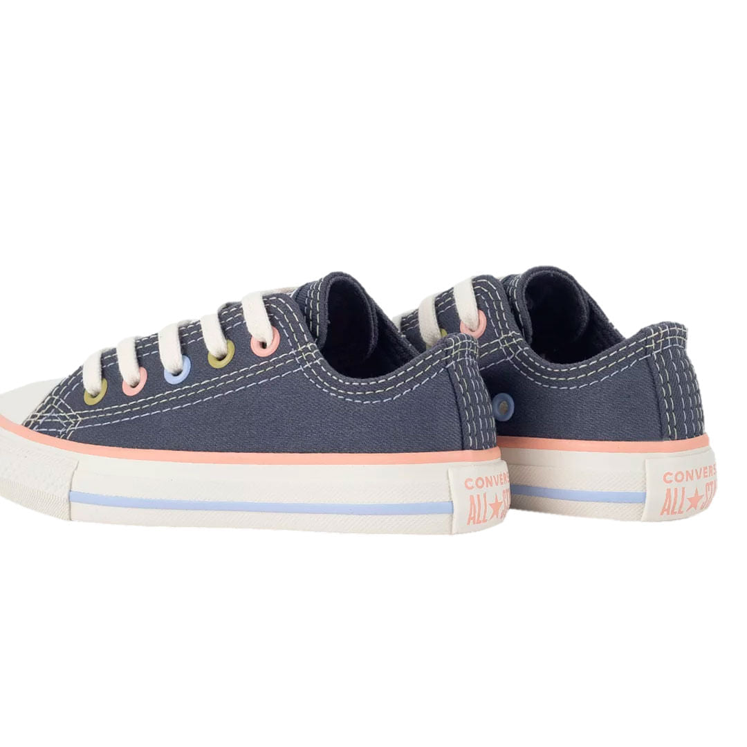 • O clássico Chuck Taylor All Star na versão kids, nesta coleção Vintage Remastered, é confeccionado em lona de algodão, possui costuras duplas, ilhoses na cor prateada, uma tira de tecido no calcanhar que proporciona maior suporte ao tênis, forro interno acolchoado para maior conforto e dois ilhoses laterais para uma transpiração adequada aos pés. O logo com assinatura Converse Chuck Taylor All Star é aplicado na parte interna dos canos, enquanto o logo Converse All Star é aplicado na heeltab do calcanhar. O solado vulcanizado garante a aderência adequada ao caminhar.