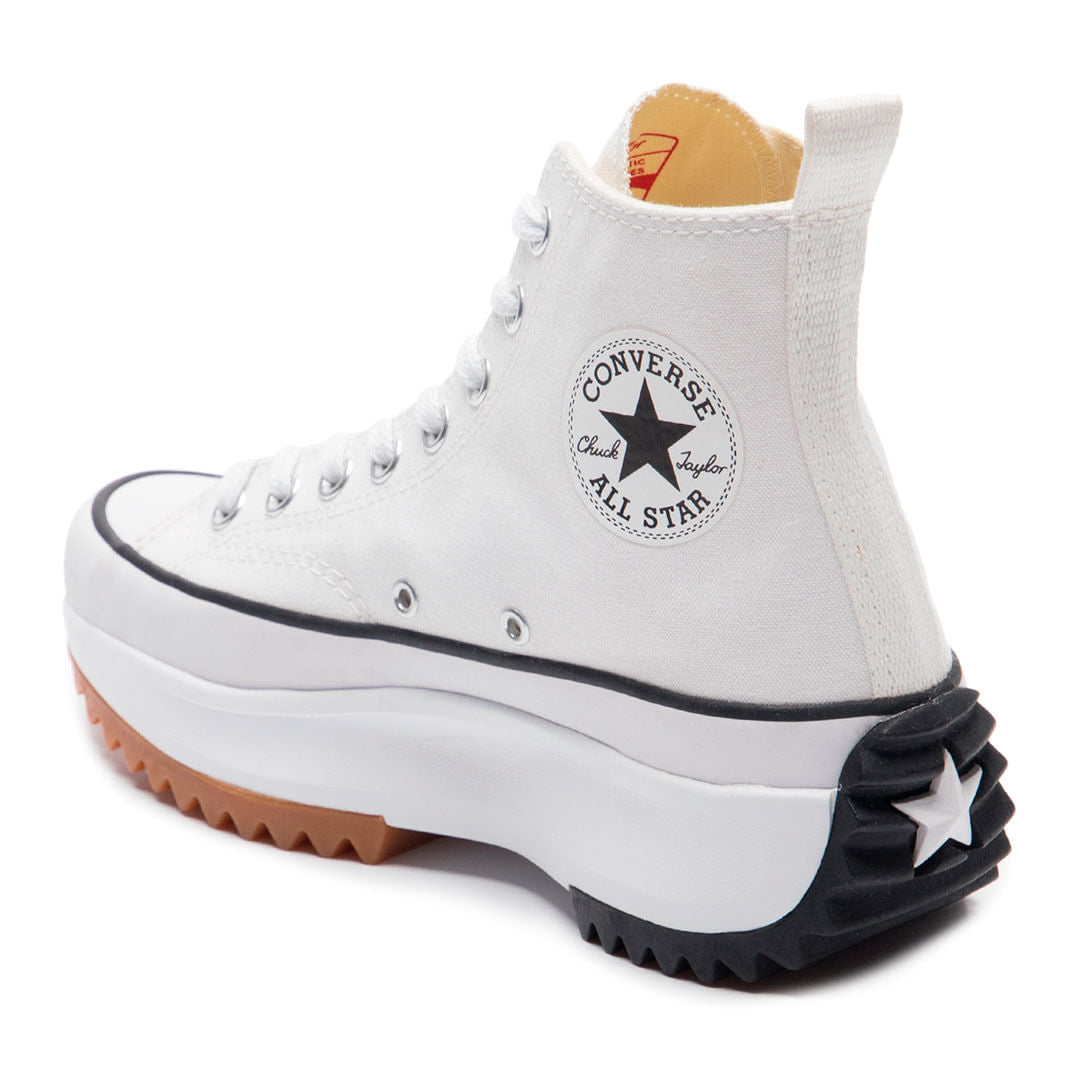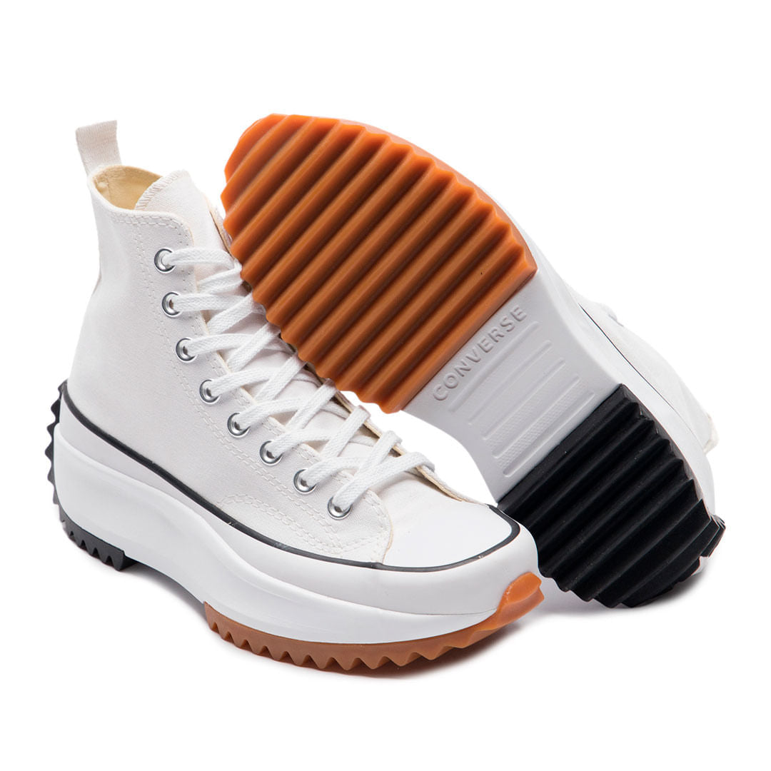 • O Converse Run Star Hike é construído sobre uma plataforma robusta com solado bicolor e é confeccionado em tecido canvas de algodão tipo lona, com costuras duplas. Com o Patch Logo do tradicional Converse Chuck Taylor All Star aparecendo nos canos, o modelo possui dois ilhoses laterais para a transpiração adequada dos pés. Possui palmilhas SmartFOAM para melhor amortecimento. O solado plataforma tratorado, com aproximadamente 5,5 cm de altura (podendo variar conforme o tamanho do tênis), é feito em EVA e borracha, dando mais resistência ao tênis. O design é finalizado com o icônico Patch aplicado no calcanhar, com a assinatura do Chuck Taylor.