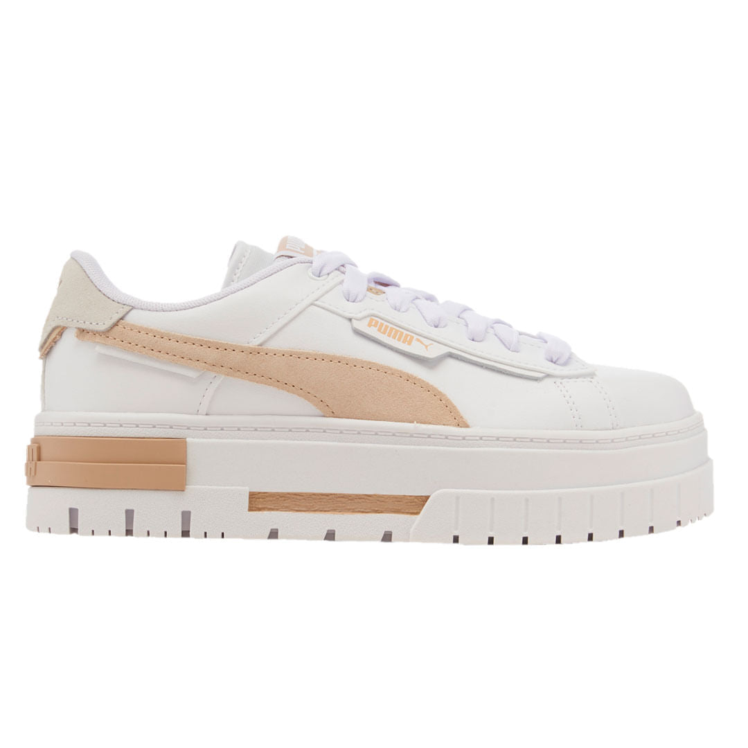• O Mayze acaba de ganhar um novo visual ousado. O Mayze Crashed cria uma estética distorcida no cabedal e na silhueta original do Mayze, resultando em um novo design rebelde pronto para quebrar as regras. Esta produção apresenta uma base sintética com detalhes em couro e faixa Formstrip e calcanhar em camurça.