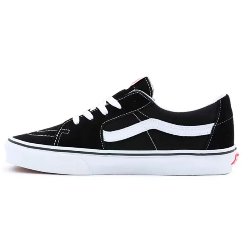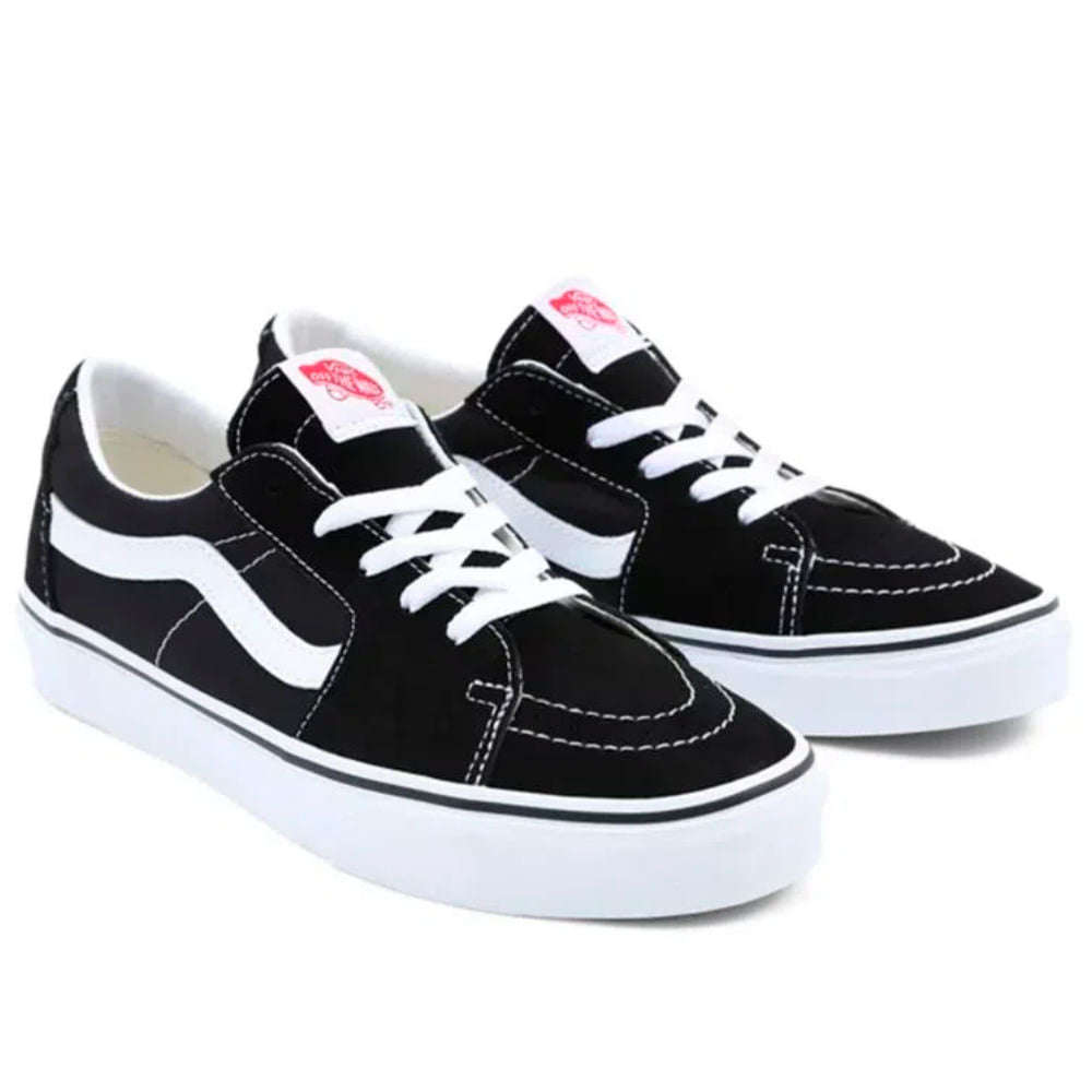 • O tênis Vans Sk8-Low, inspirado no lendário modelo de skate de cano alto da marca, é construído com uma variedade de cores e materiais para fornecer uma estética familiar ao Sk8-Hi em um tênis com perfil cano baixo.