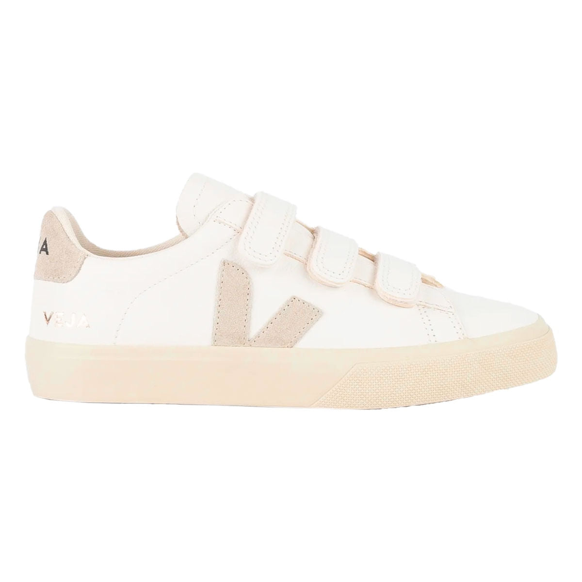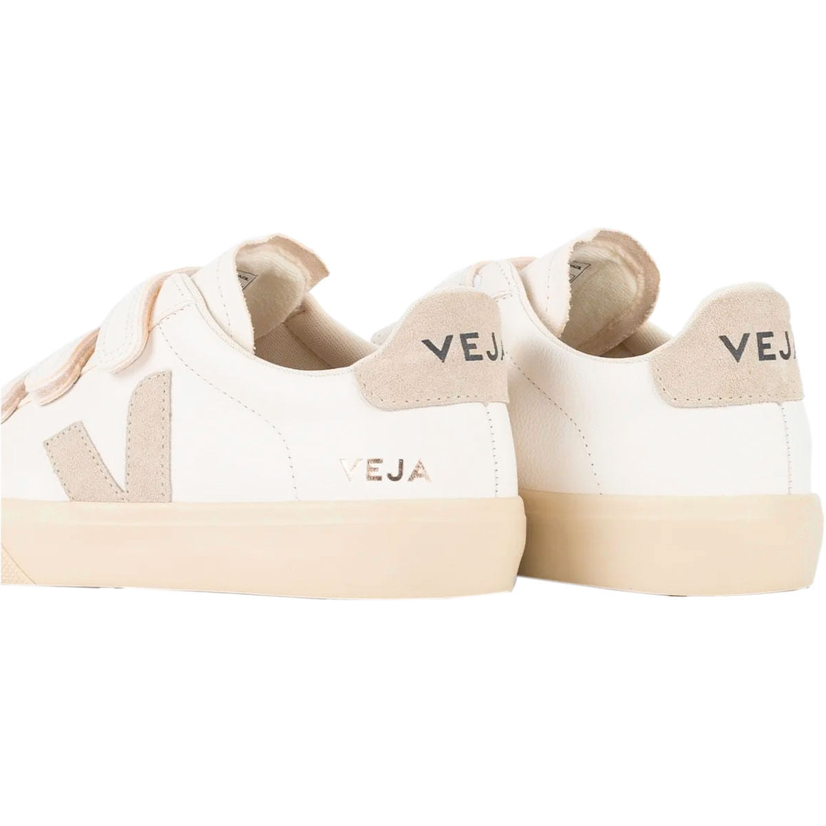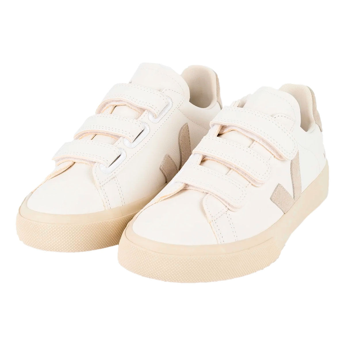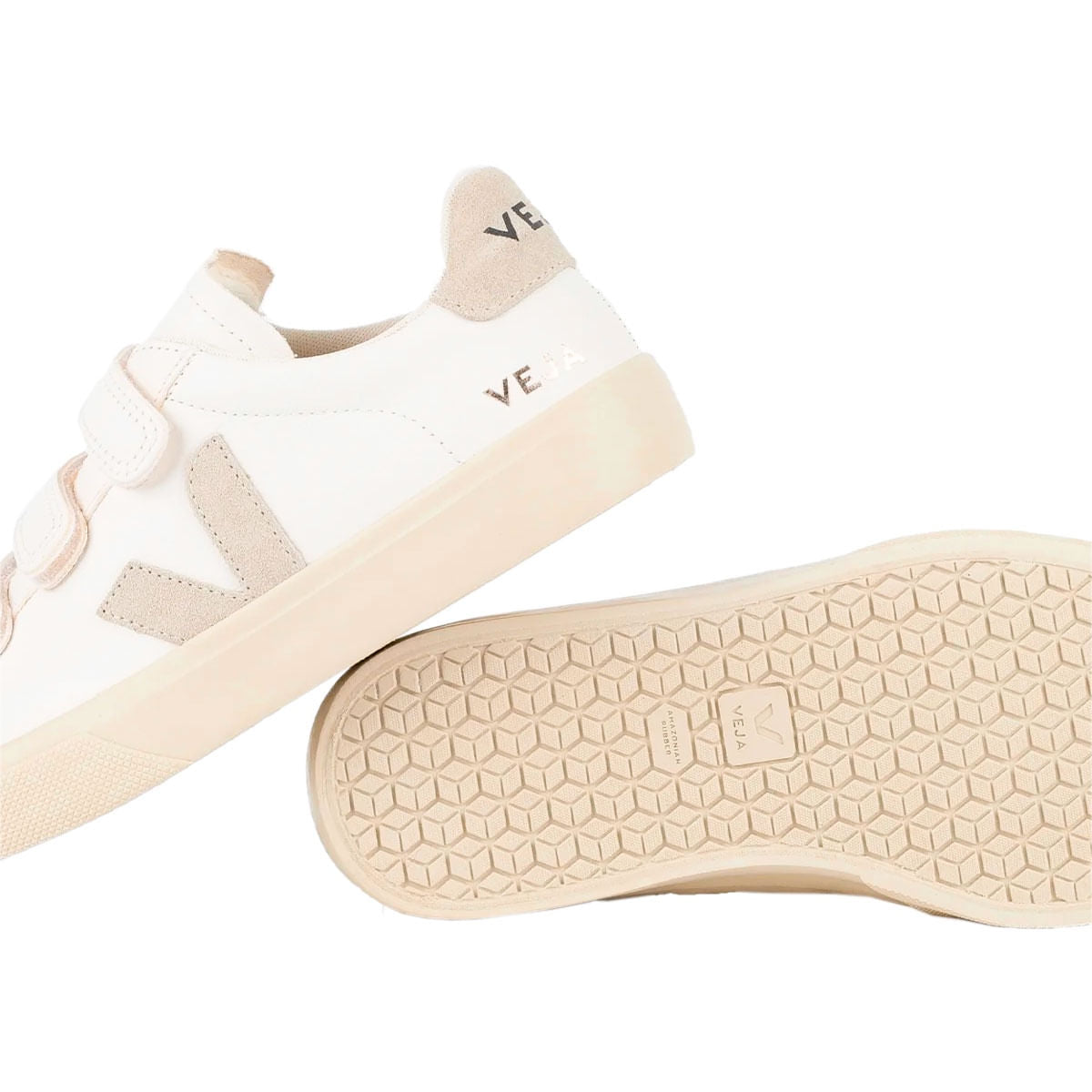 • Este modelo é confeccionado em couro livre de cromo, seguindo as normas REACH: com baixos níveis de produtos químicos e com uma atenção especial ao uso da água no processo de curtimento e na reciclagem da mesma. O fechamento deste tênis é feito em velcro. O logo VEJA é aplicado em couro camurça na lateral. O forro interno é confeccionado em poliéster feito a partir de garrafas PET recicladas. A palmilha é feita em EVA expandido com borracha nativa da Amazônia, produzida de acordo com os princípios do comércio justo, e revestida de algodão orgânico. A borracha de origem Amazônica vulcanizada é encontrada também no solado do tênis, trazendo mais sustentabilidade e aderência.